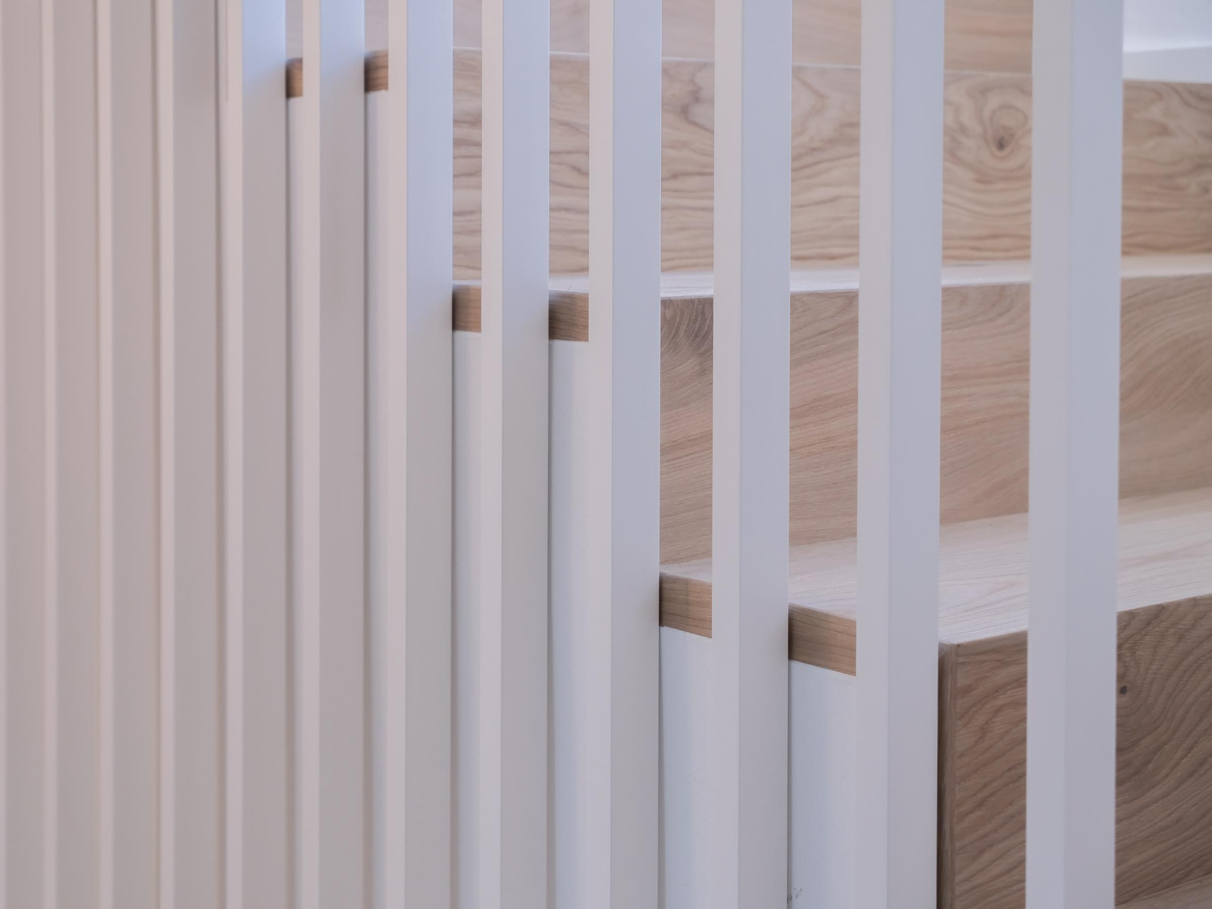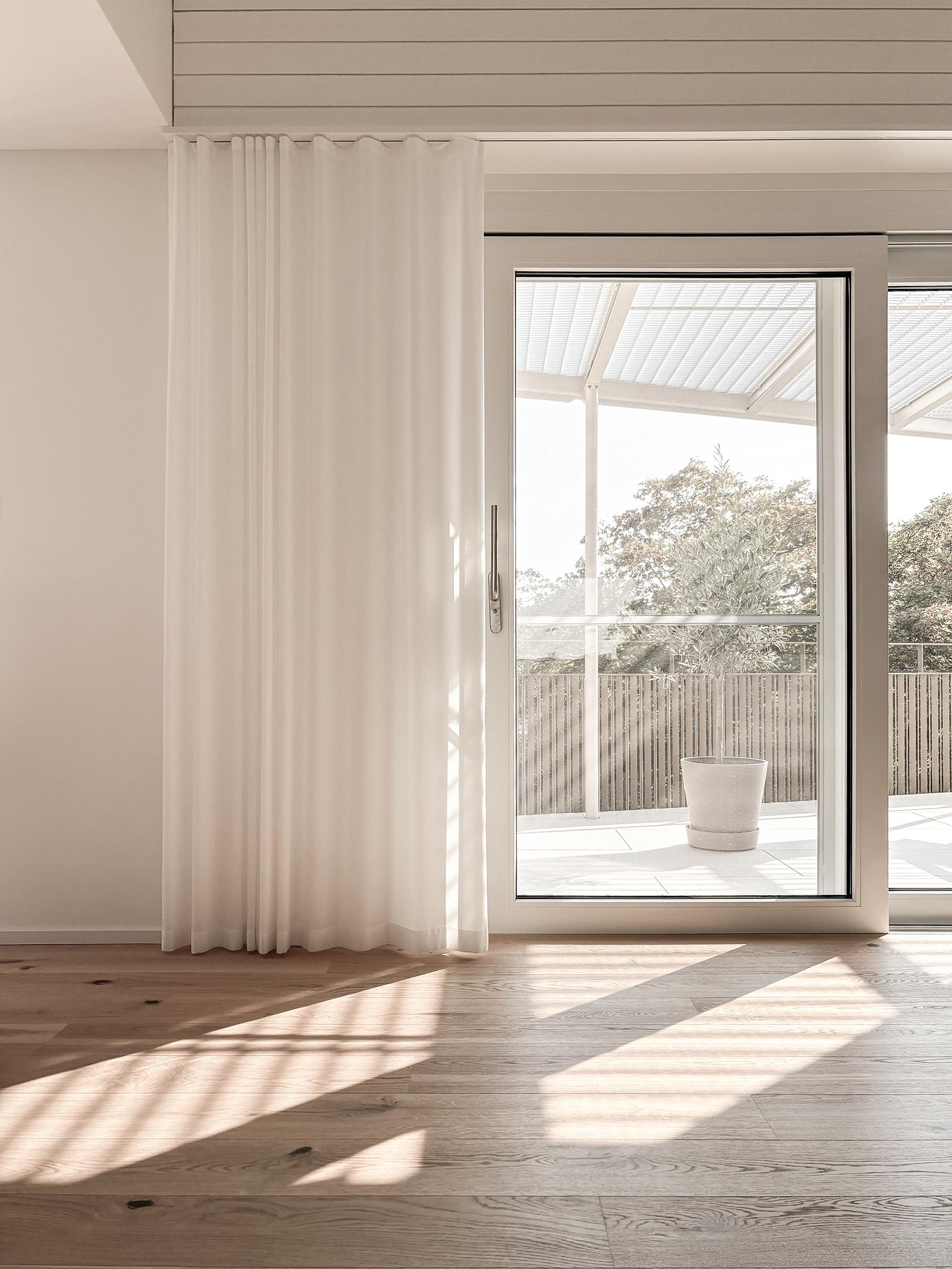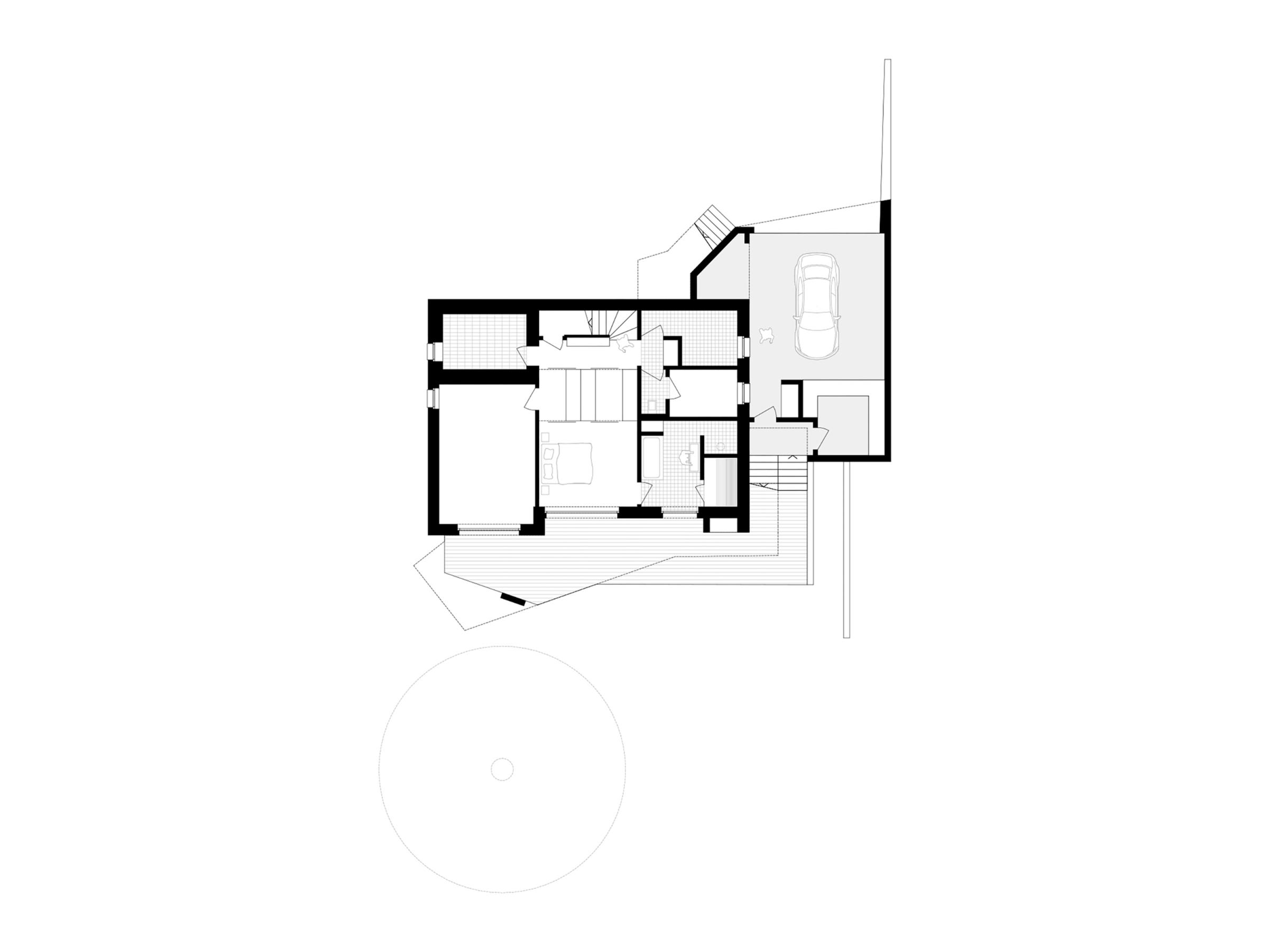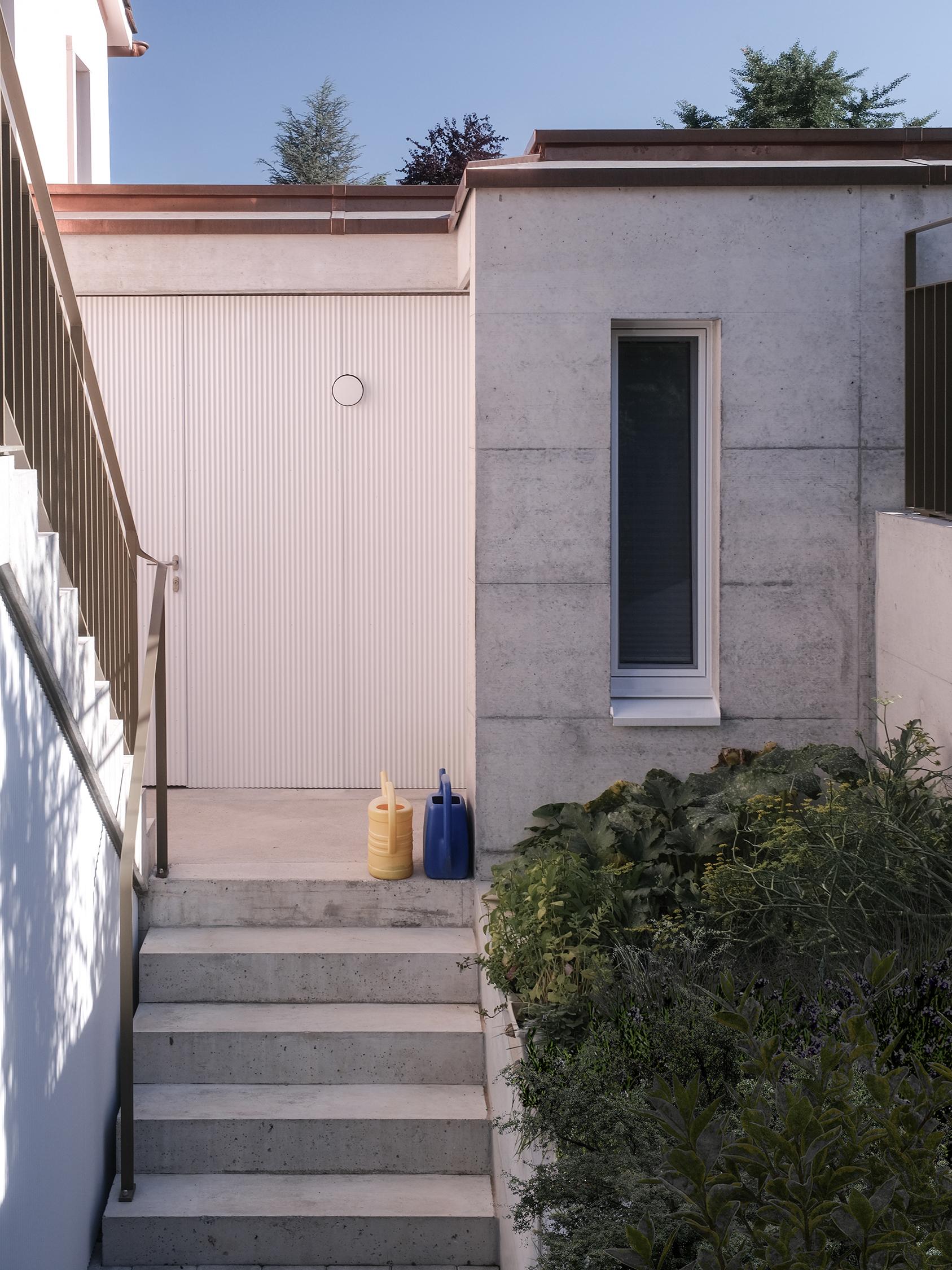 Das bestehende Wohnhaus wurde vollständig auf den Rohbau zurückgebaut. Feine Grundrissanpassungen bilden die Grundlage für die neuen Anforderungen an die Nutzung. Zusätzlich zu den Anpassungen in Bezug auf Haustechnik und Wärmedämmung wurde das Haus um einen Garagenanbau sowie eine grosszügige Terrasse auf der Südseite ergänzt. Unter der Terrasse befindet sich ein überdachter Bereich im liebevoll gestalteten Garten. Über der Terrasse bietet eine Pergola Schatten. Lamellenroste zwischen der Tragkonstruktion werfen je nach Sonnenstand und der darauf abgestimmten Ausrichtung der Lamellen in definierten Bereichen der Terrasse Schatten.