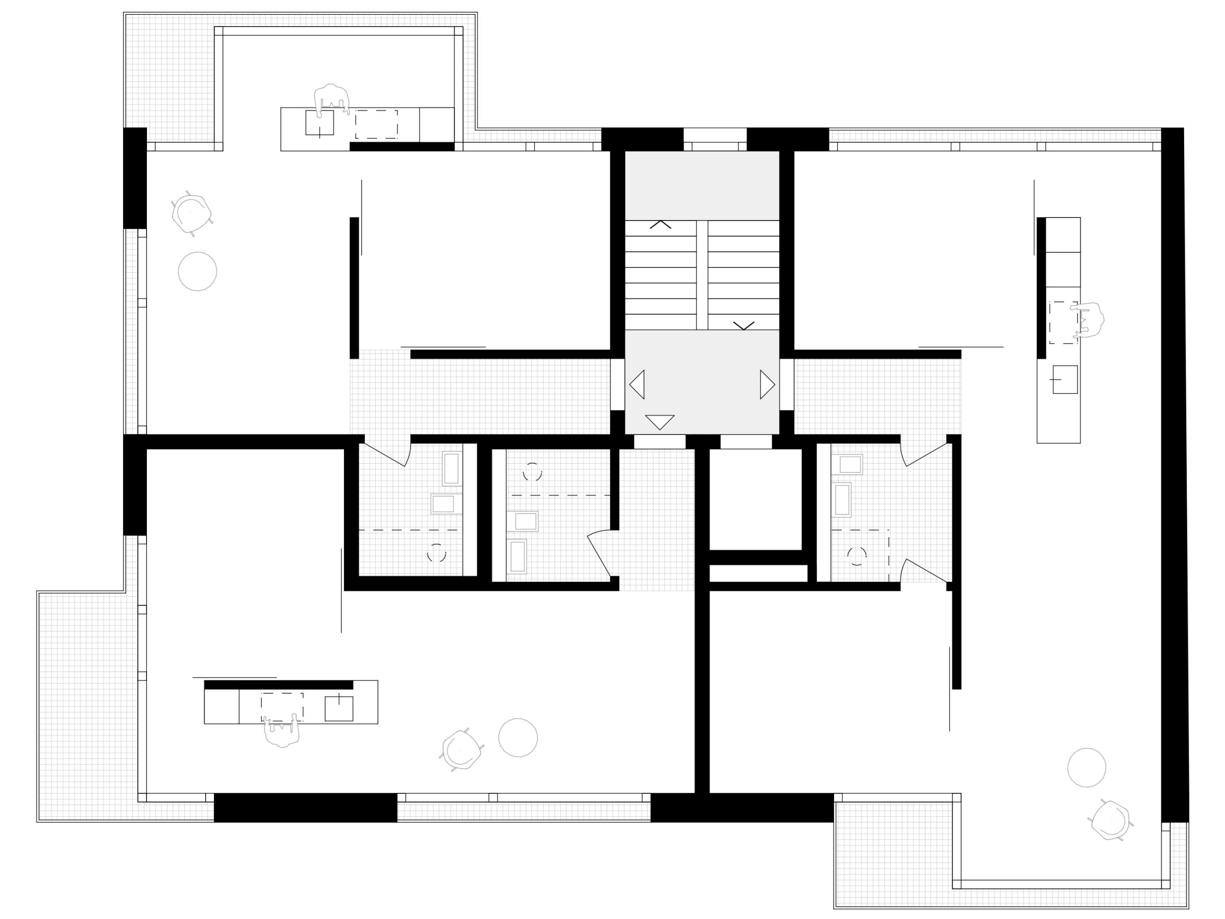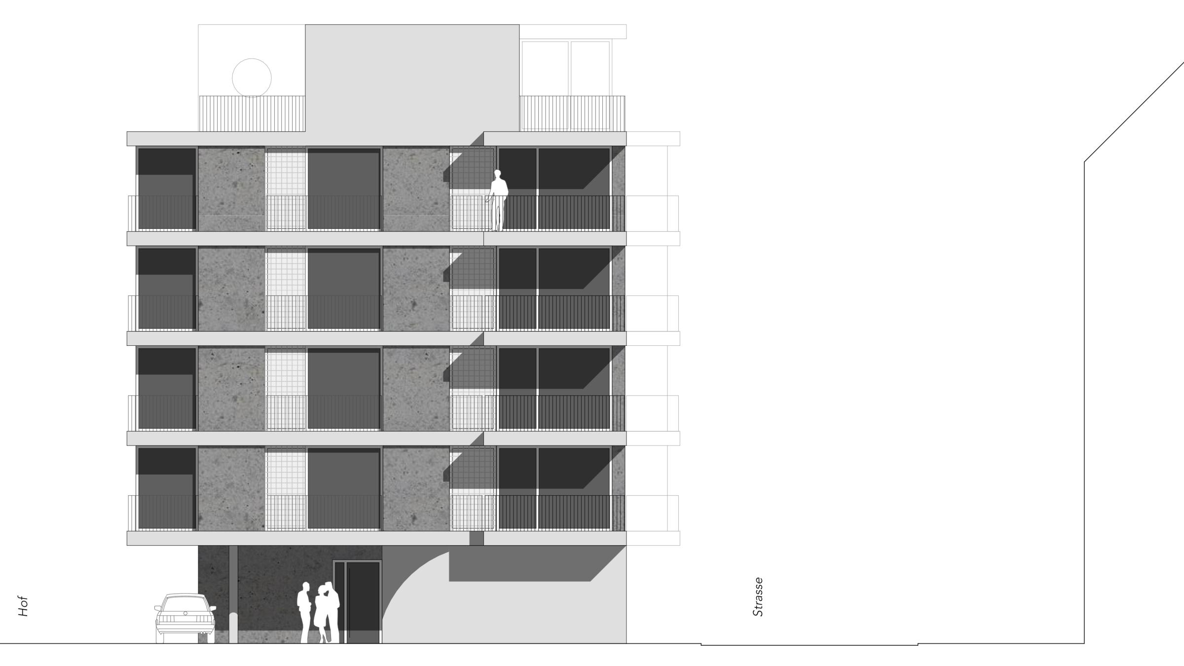 Als Teil einer Blockrandbebauung muss die sanierungsbedürftige Bausubstanz erneuert werden. PEK ARCHITEKTEN wurden damit beauftragt einen Neubau zu projektieren. Das Wohnhaus mit 12 Klein- und einer grosszügigen Attikawohnung beinhaltet ein optisch abgesetztes Sockelgeschoss und sich repetierende, darüberliegende Wohngeschosse. Die Fassade referenziert auf die ortstypische Fassadenerscheinung mit Klinkersteinen, Naturstein, Glasbaustein und adaptiert diese Optik in einem neuen Gewand. Im Erdgeschoss werden Gewerberäumlichkeiten eingeplant.