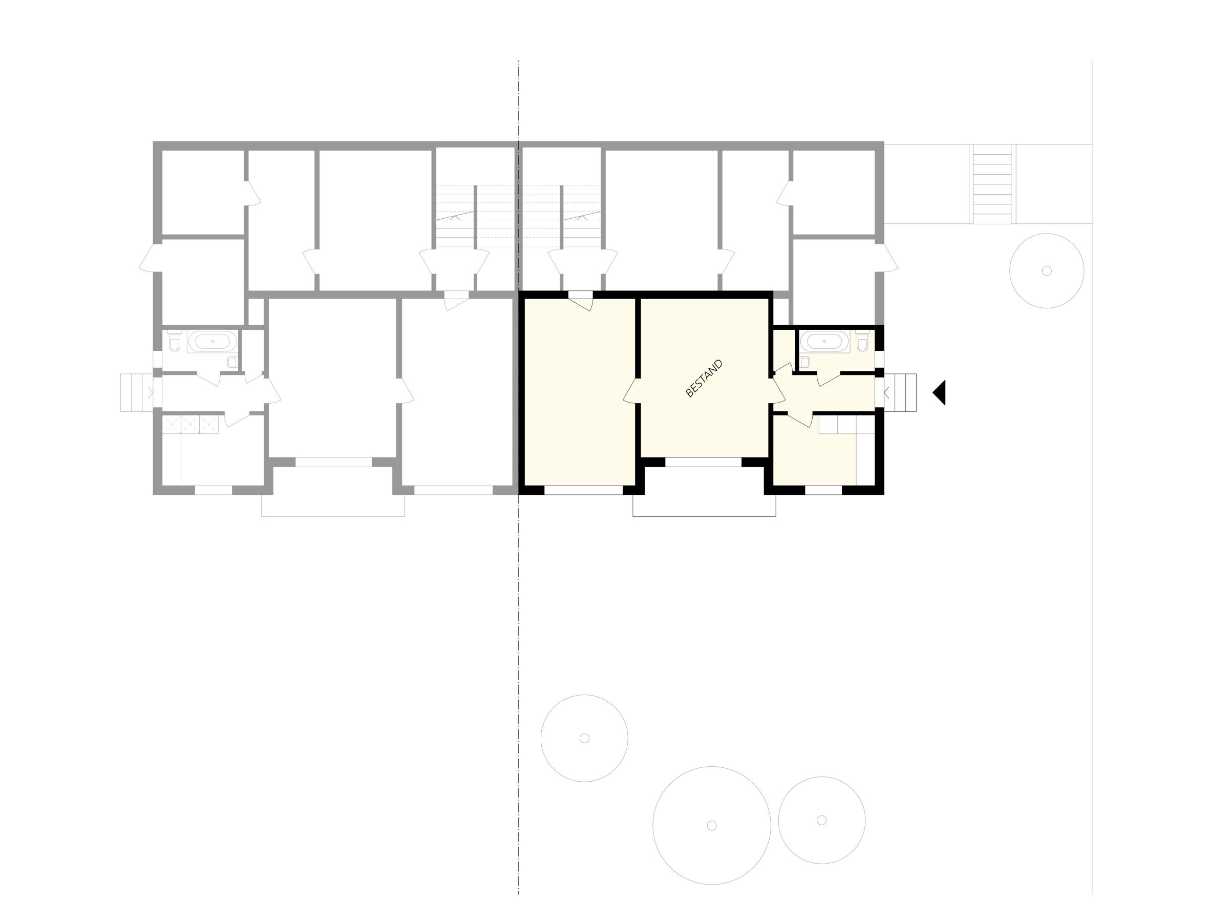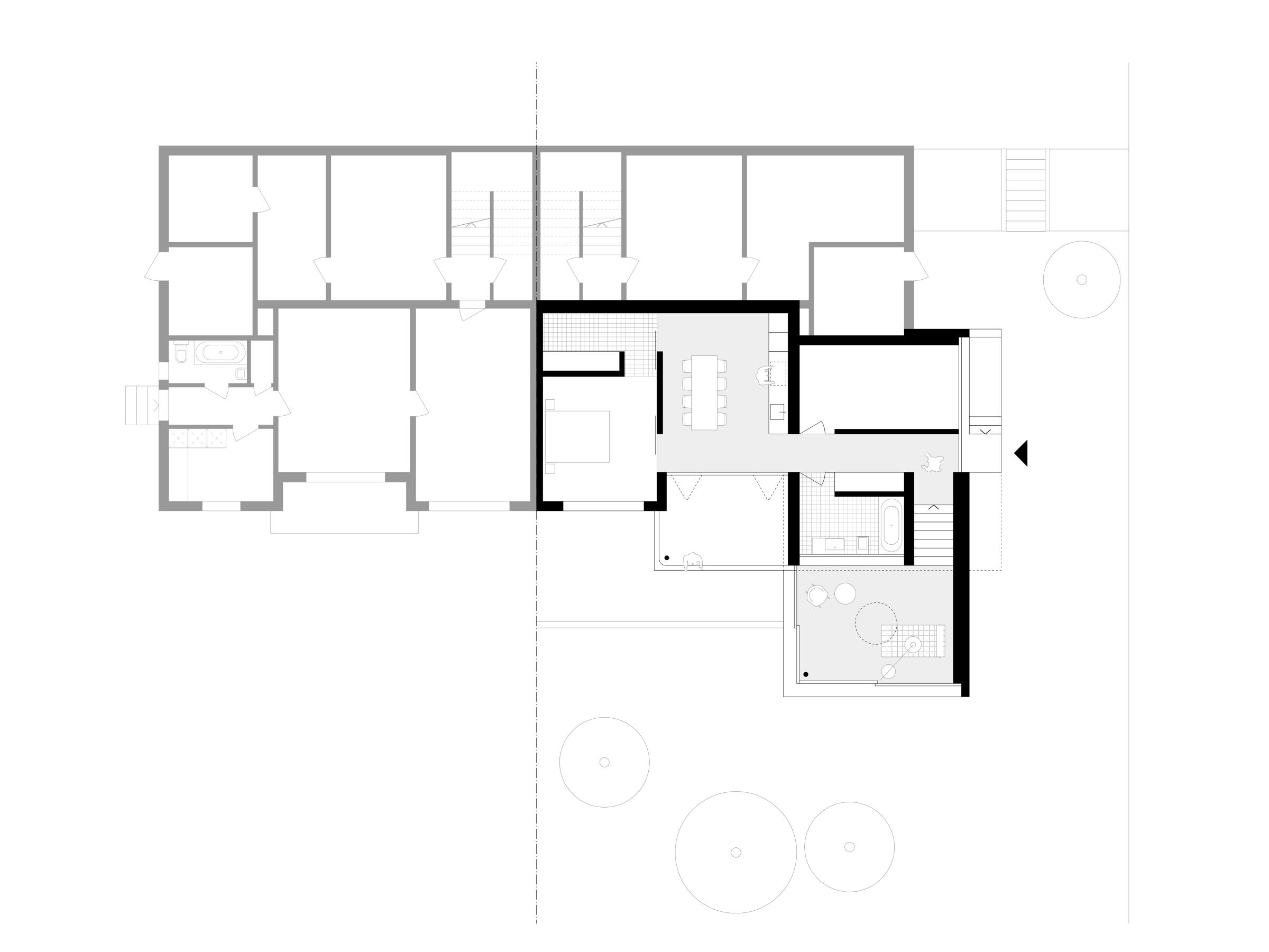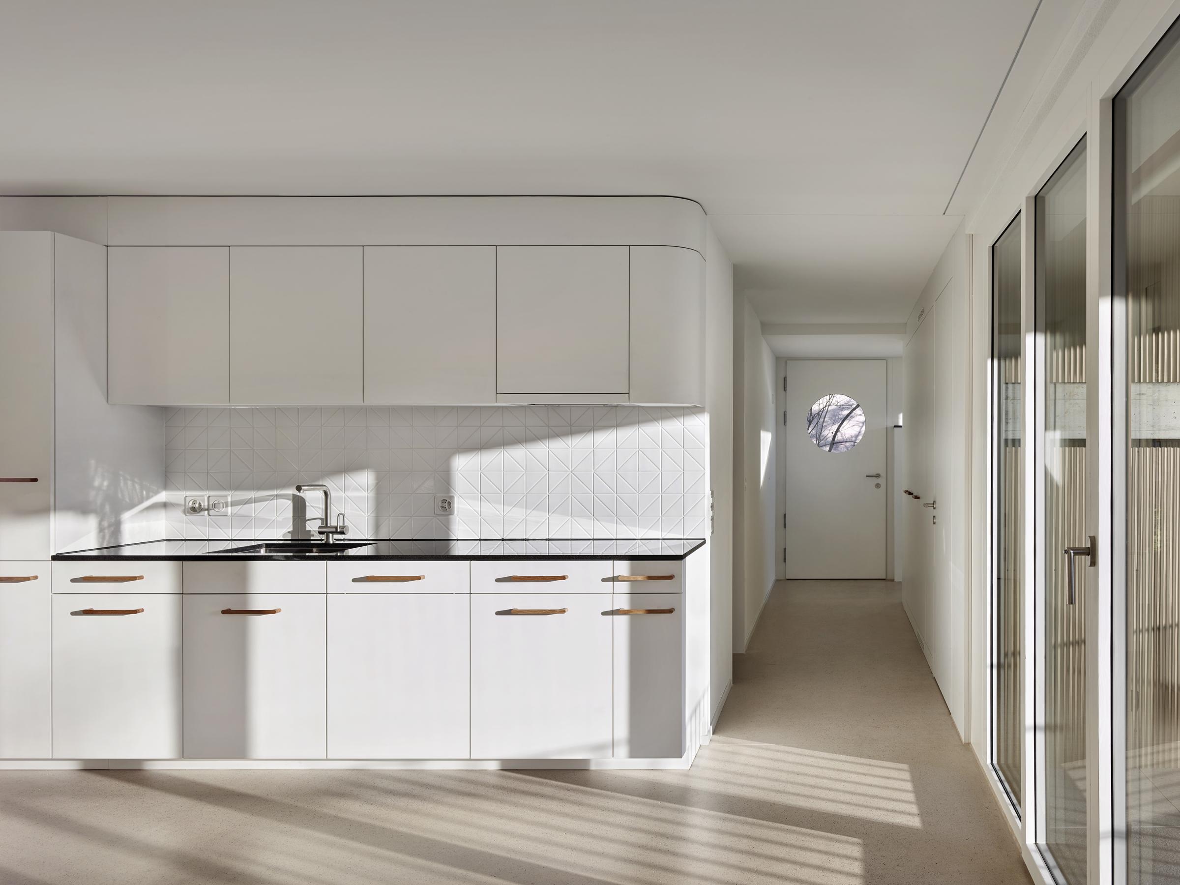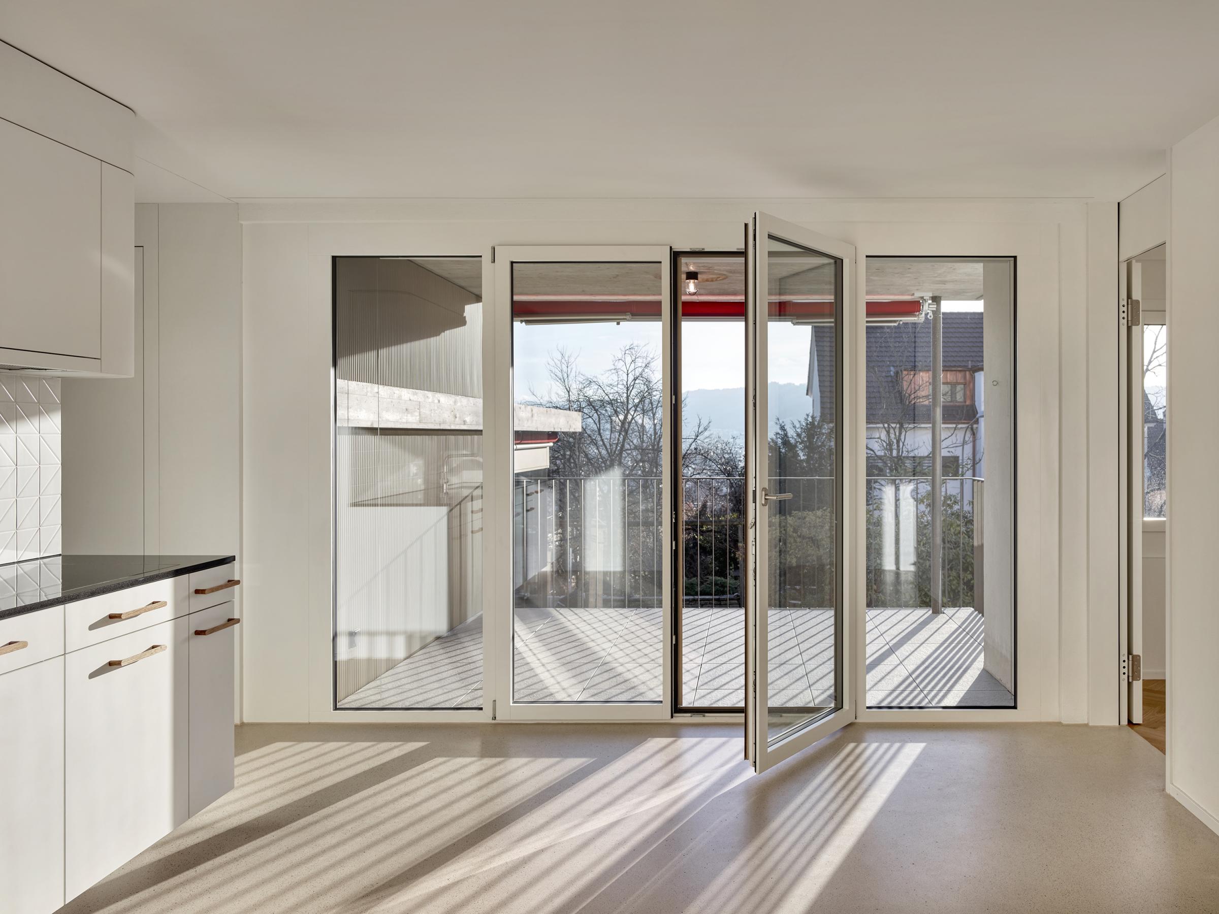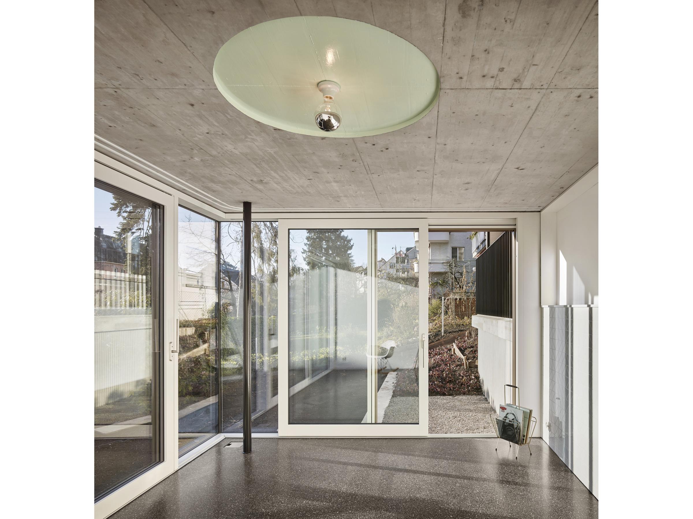 Das in den 1940er Jahren erbaute Mehrfamilienhaus in Zürich-Wipkingen hat eine kleine Gartenwohnung, die nach einem Mieterauszug totalsaniert werden soll. PEK ARCHITEKTEN erhalten den Auftrag, die Wohnung zu erweitern und eine attraktive und moderne Wohnung zu gestalten, ohne dass dabei der Charme des Bestandes verloren gehen soll. Der Anbau nimmt die Topografie des umliegenden Gartens auf und versetzt sich so um ein Halbgeschoss gegenüber dem Altbauteil. Diese räumliche Abstufung macht das neue Wohnzimmer zu einem eigenständigen ‘Kubus im Grünen’ mit viel Individualität. Der Versatz ermöglicht die natürliche Besonnung der hinter dem Wohnzimmer liegenden Räume. Das Dach des Anbaus wird zur neuen und grosszügigen Terrasse der darüberliegenden Wohnung. Sämtliche Balkone des bestehenden Wohnhauses werden vergrössert und erneuert.