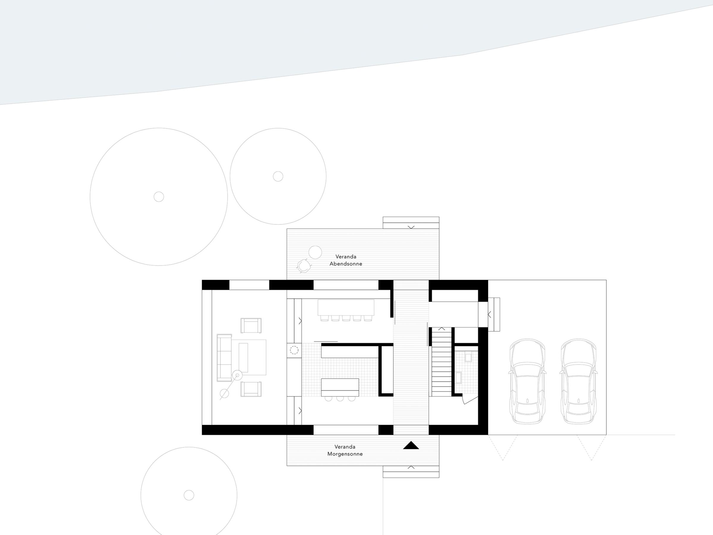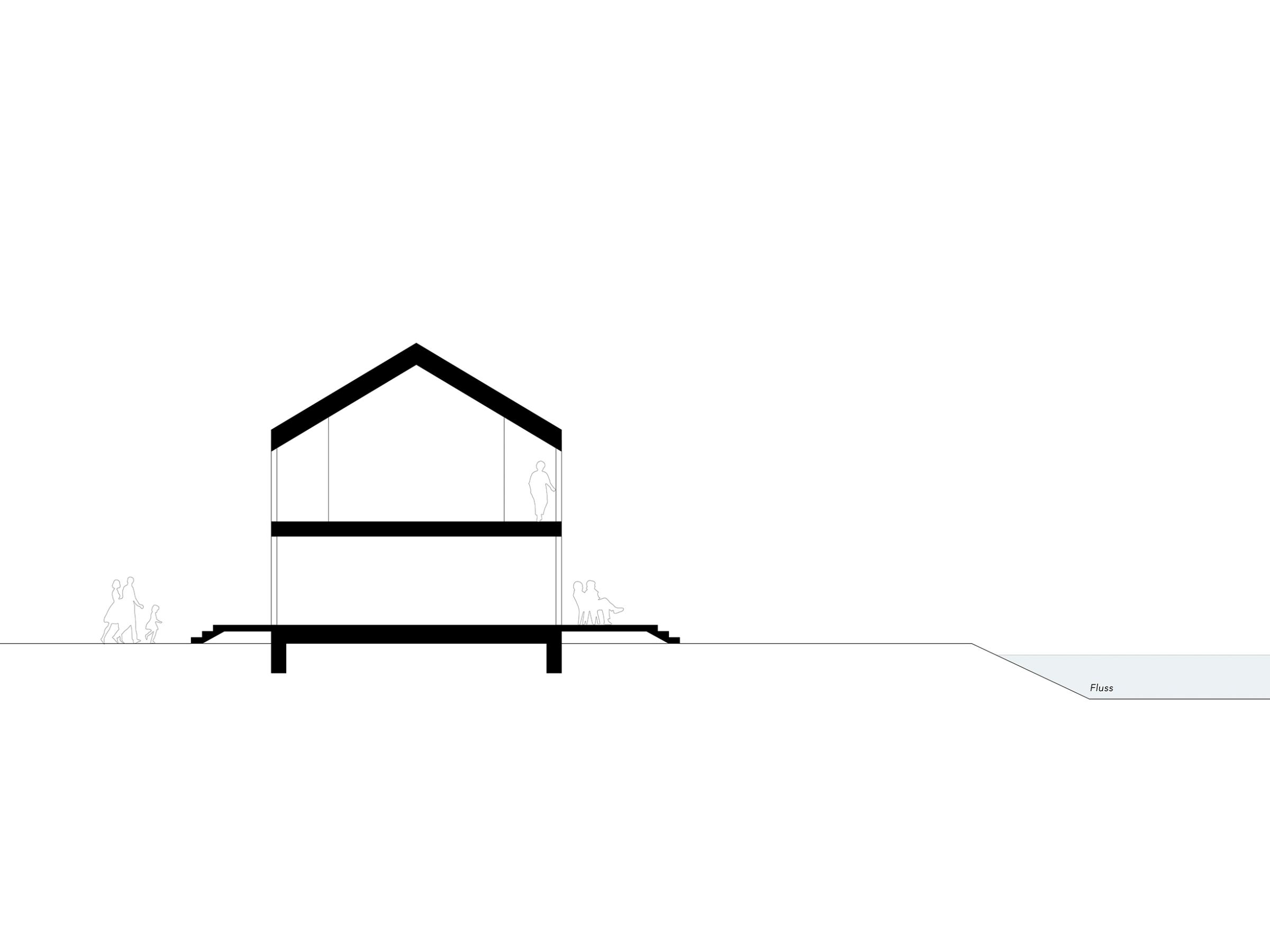 In der Kernzone in Winterthur-Hegi soll ein Neubau eines EFH direkt an der Eulach geprüft werden. Der Entwurf besticht durch seine Einfachheit in Form und Ausdruck. Die Anlage ist so konzipiert, dass das Haus ein Riegel stellt und einen starken Rücken zum südlich-östlich gelegenen MFH bildet. Durch eine grosszügige Entrée-Situation wird beim Betreten des Gebäudes sofort der Bezug zum 'Eulach-Garten' hergestellt und eine klare, schlüssige Raumaufteilung generiert. Das Haus lebt von der Verschmelzung von Innen und Aussen und stellt mit seinen Veranden schönste Erholungsräume im Aussenraum direkt am Fluss zur Verfügung.